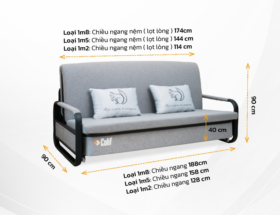 Với 3 kích thước 1m2 - 1m5 - 1m8, giường sofa thông minh Colif Smart Bs phù hợp mọi không gian nội thất, đáp ứng nhu cầu sử dụng của mọi gia đình.