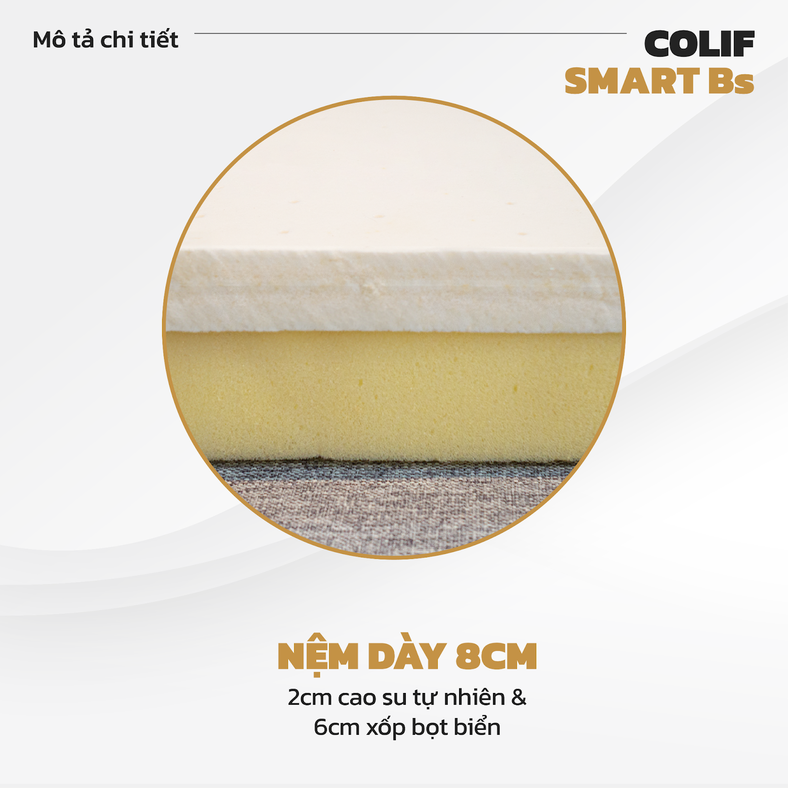 Giường sofa thông minh Colif Smart Bs có phần nệm dày 8cm, gồm 2 lớp cao su non và xốp bọt biển, có độ đàn hồi tốt và chống xẹp lún.