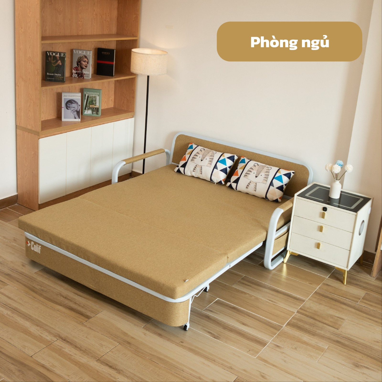 Giường sofa thông minh Colif Smart Bs dễ dàng gấp gọn khi không sử dụng, linh hoạt chuyển đổi từ giường thành sofa, đặc biệt phù hợp với các không gian nhỏ như phòng ngủ, phòng khách, căn hộ mini, nhà trọ.