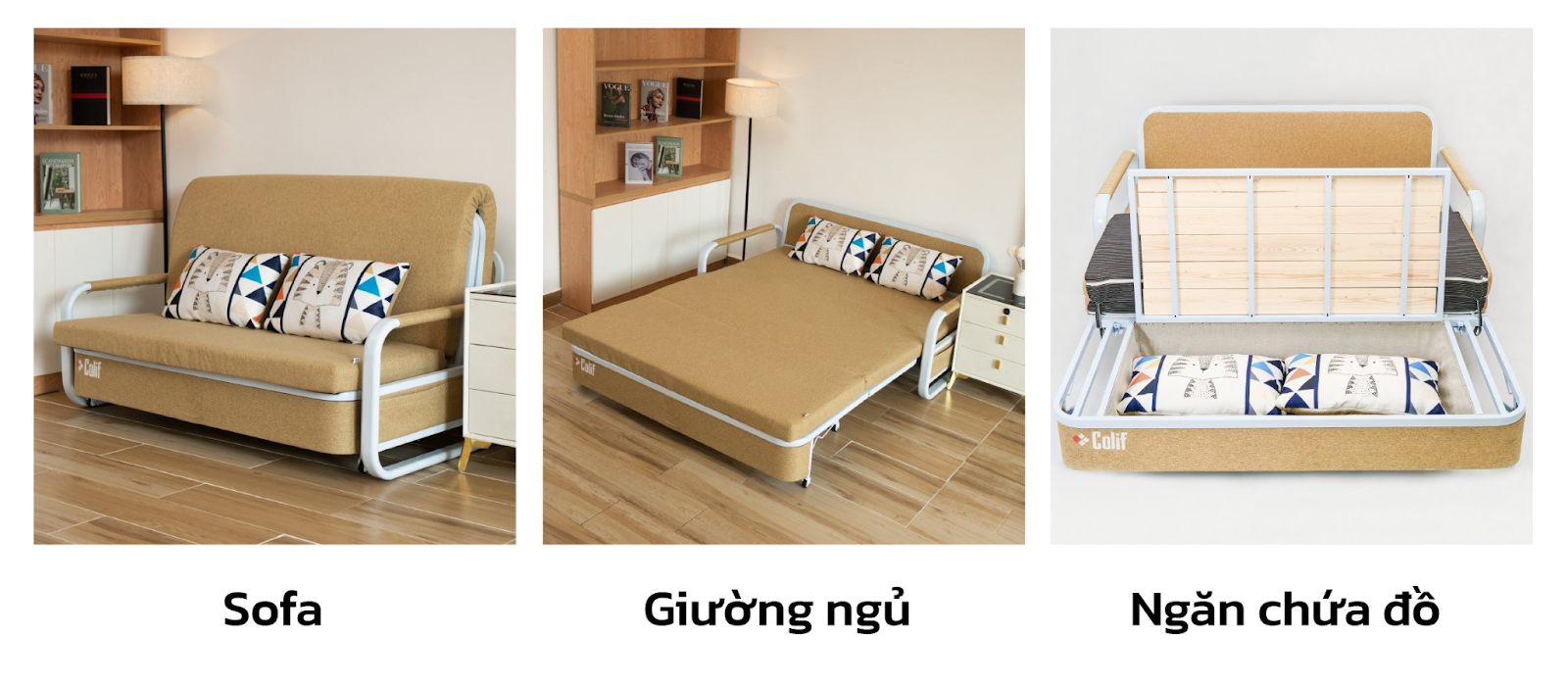 Thiết kế 3 trong 1: Giường ngủ - Ghế sofa - Tủ chứa đồ