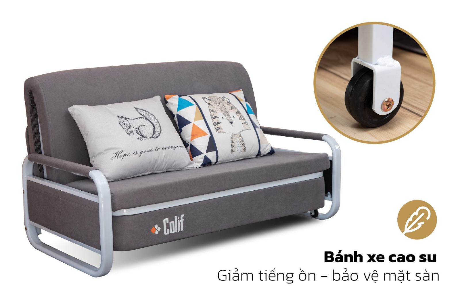 Khi muốn chuyển đổi chế độ giường sang sofa hoặc ngược lại, bánh xe cao su sẽ hỗ trợ kéo gấp dễ dàng hơn, ngoài ra việc sử dụng chất liệu cao su giúp giảm tiếng ồn và bảo vệ bề mặt sàn. Một lưu ý nhỏ là bánh xe không dùng để hỗ trợ di chuyển giường đi quanh nhà.